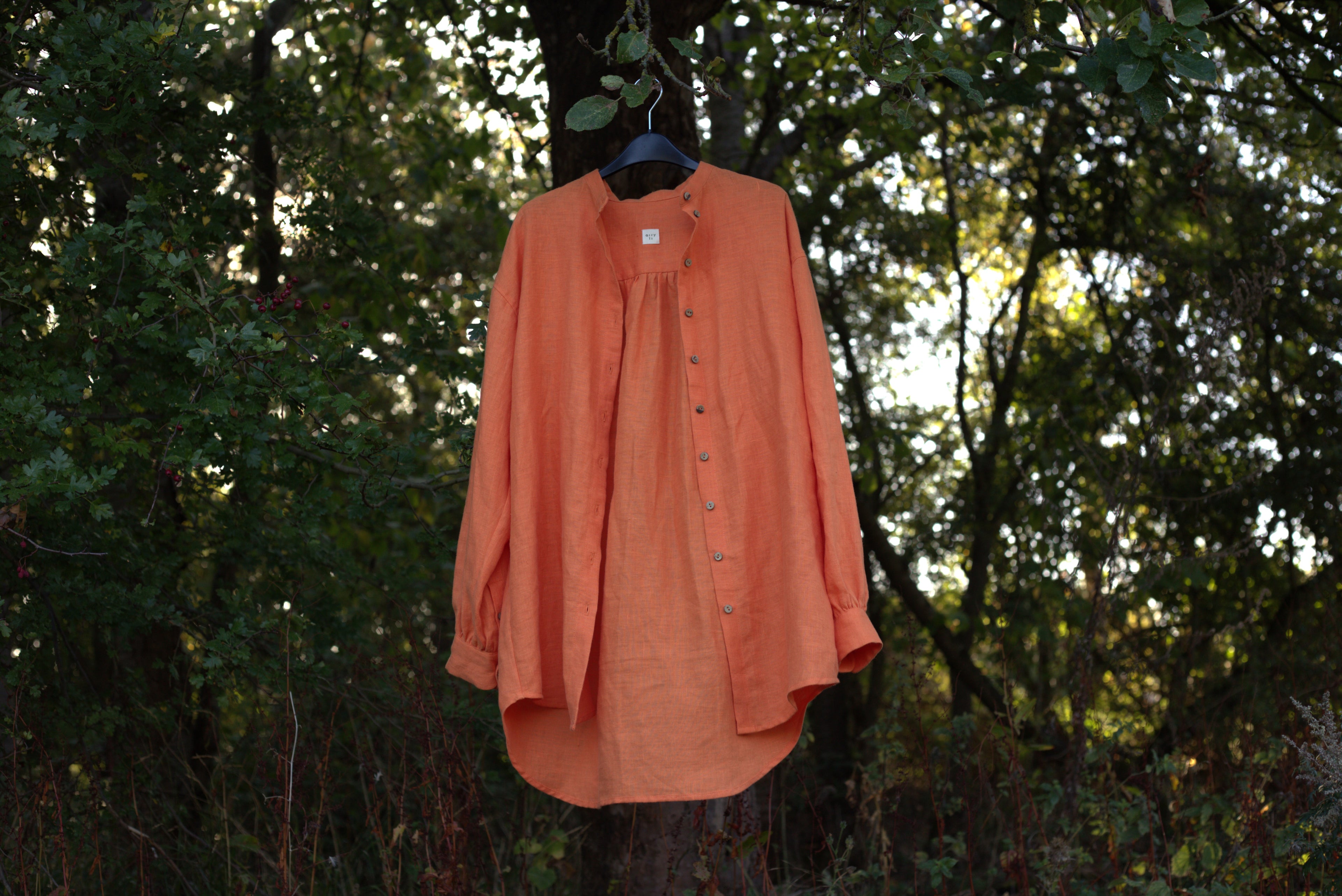 Traveller Linen shirt for women with stand collar in Juicy Orange