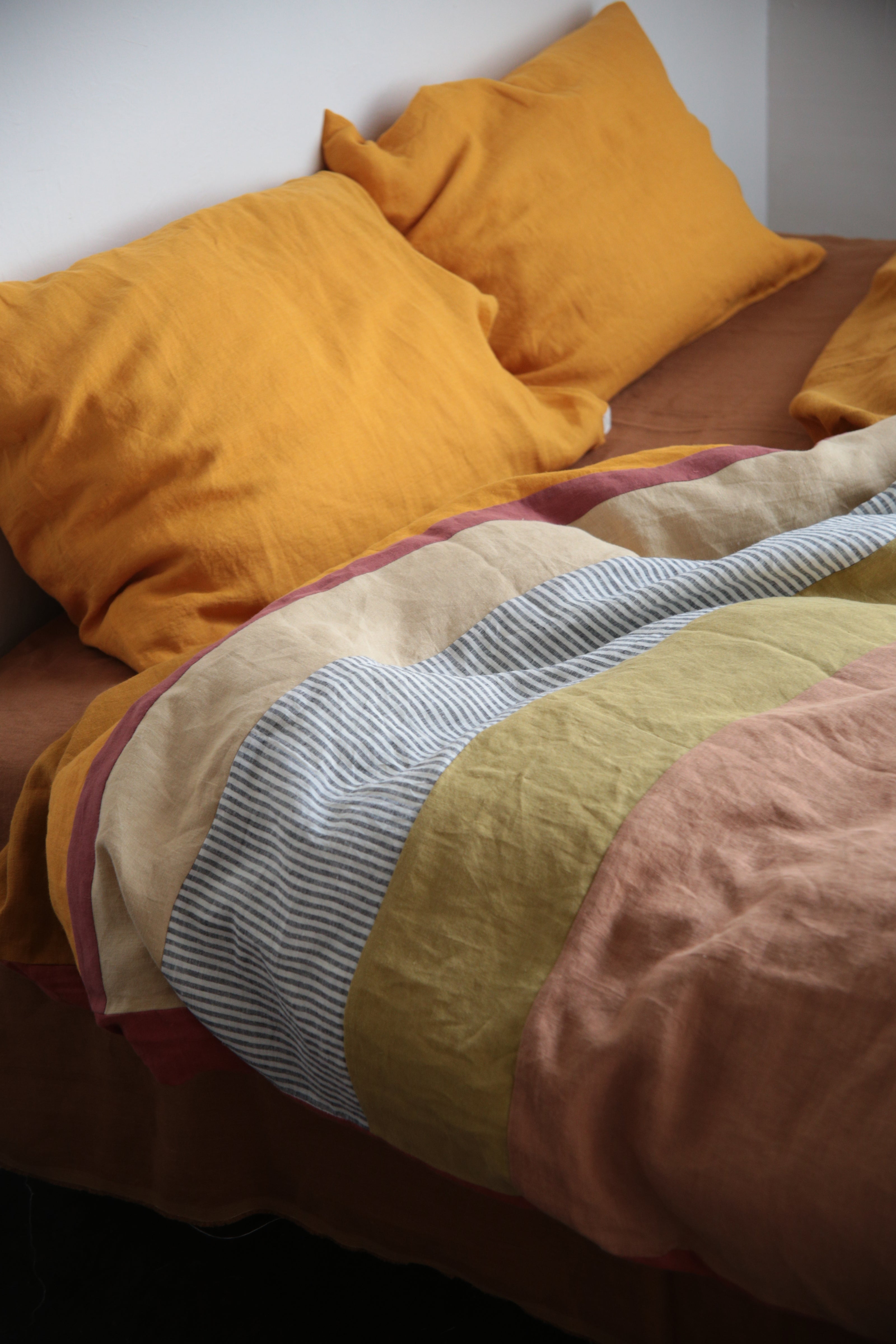 Pure Linen Duvet cover in Grey/Navy stripes