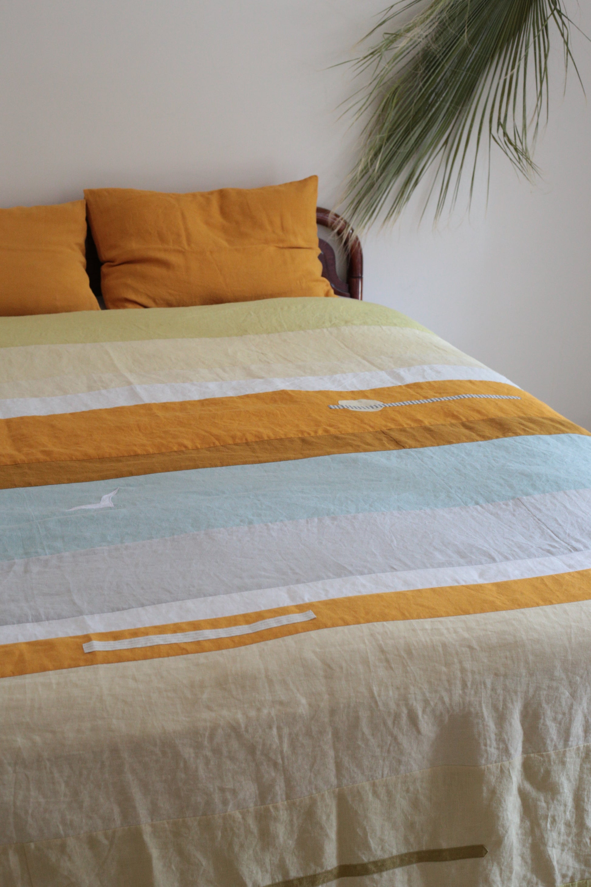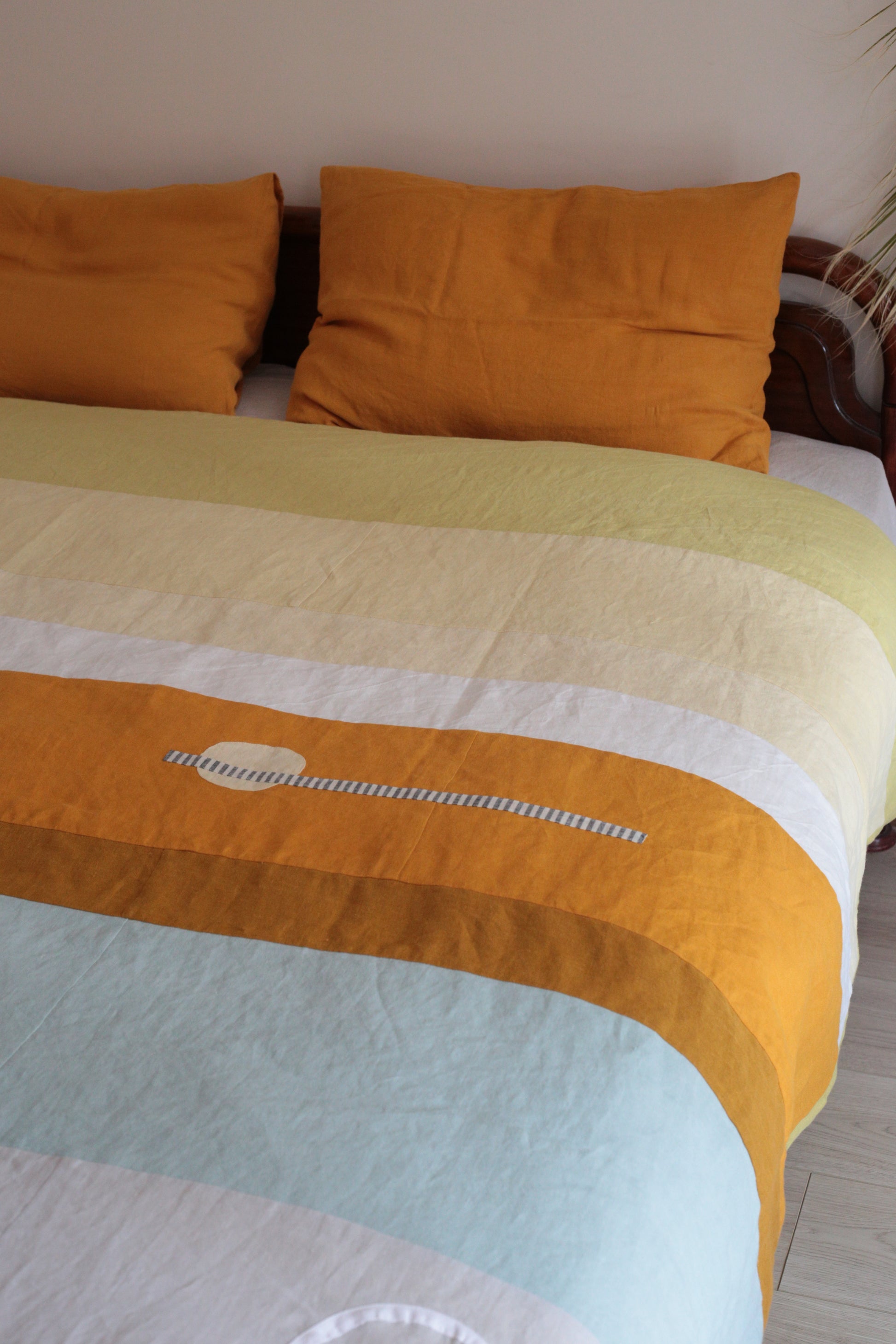Made in Turkey, where I stayed for a while after the war started in 2022. Made entirely from leftover fabrics from our linen textiles production in Kyiv. Yes, I'm crazy enough to bring linen cut-offs with me!