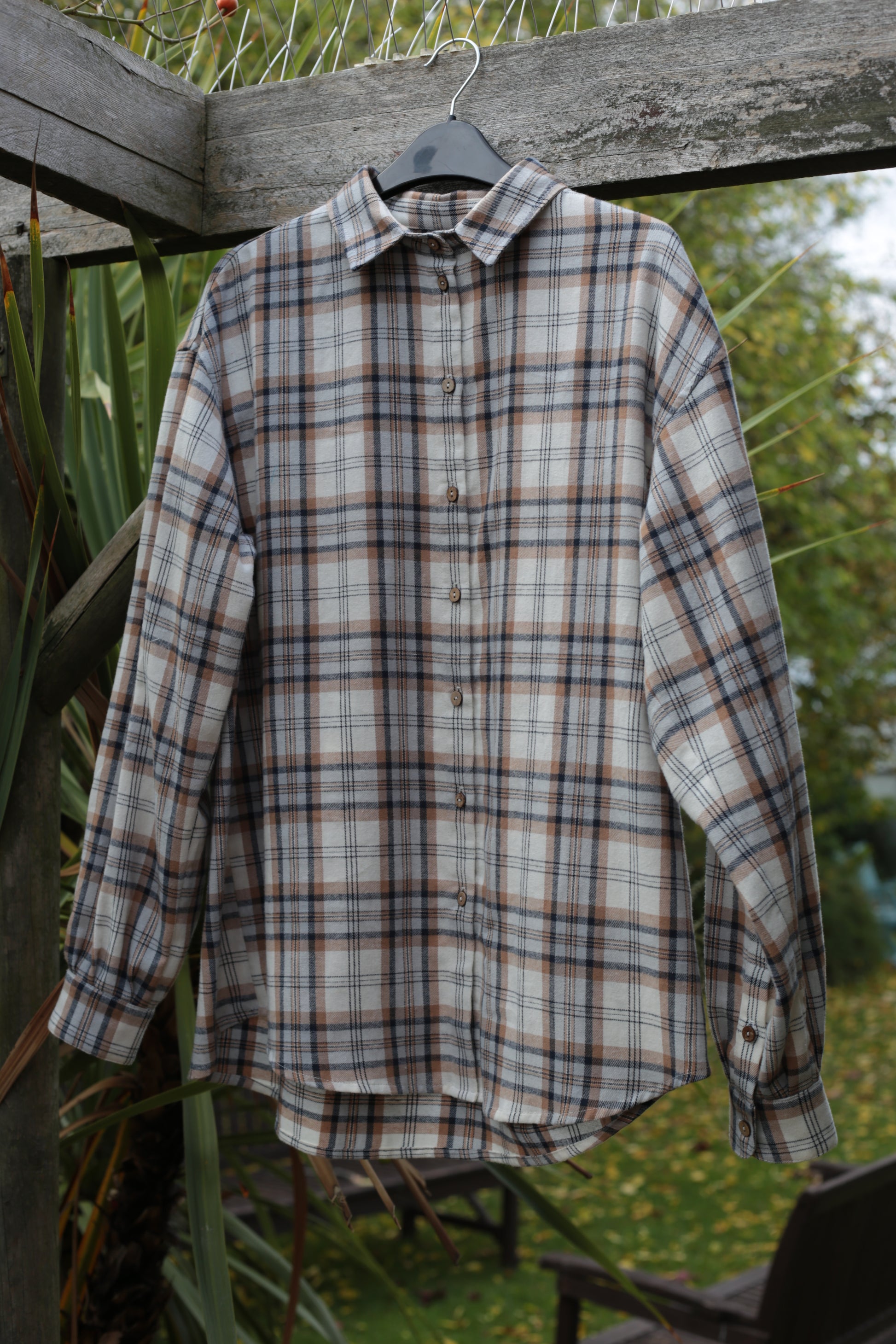 Lightweight women’s flannel shirt, made from 100% cotton. Very soft to the touch yet durable, this cozy layer is designed to last for years. Comes in 3 patterns: Beige/Blue checks and Rosy/Beige checks on a milky white background, and Bluish Grey/Light Grey checks.